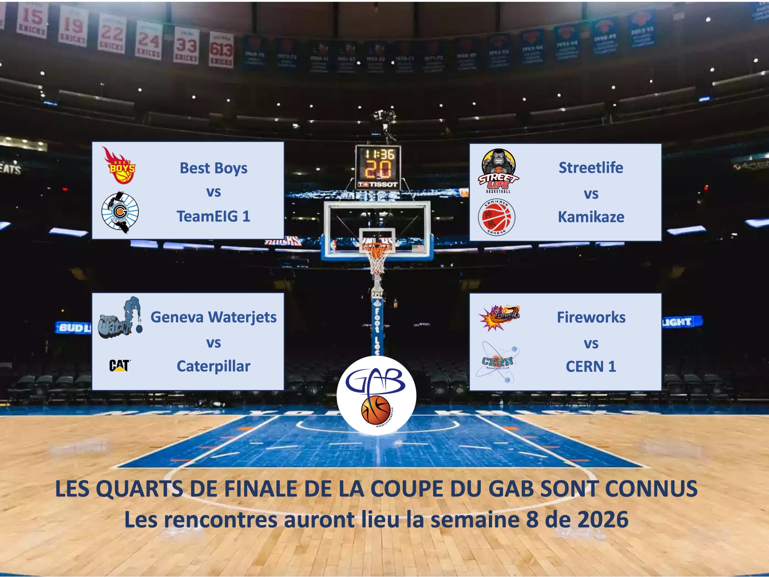 Les quarts de finale de la Coupe du GAB sont connus Actualités Mis en avant 11 décembre 2025 Les quarts de finale de la Coupe du GAB sont connus! Les rencontres auront lieu la semaine 8 de 2026.
